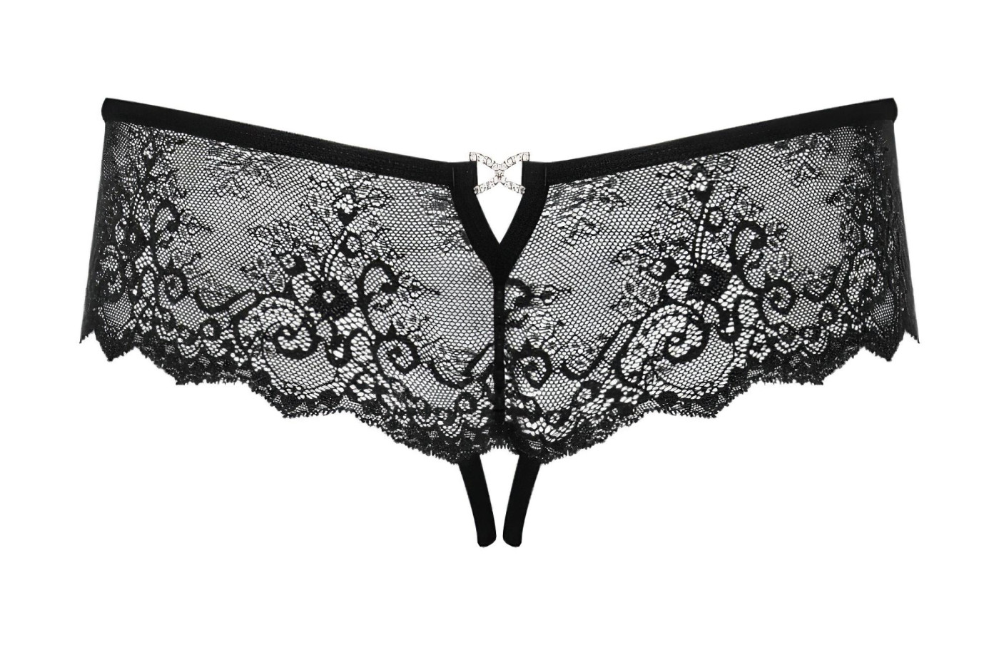 Obsessive Merossa - strasszos, nyitott női tanga - fekete